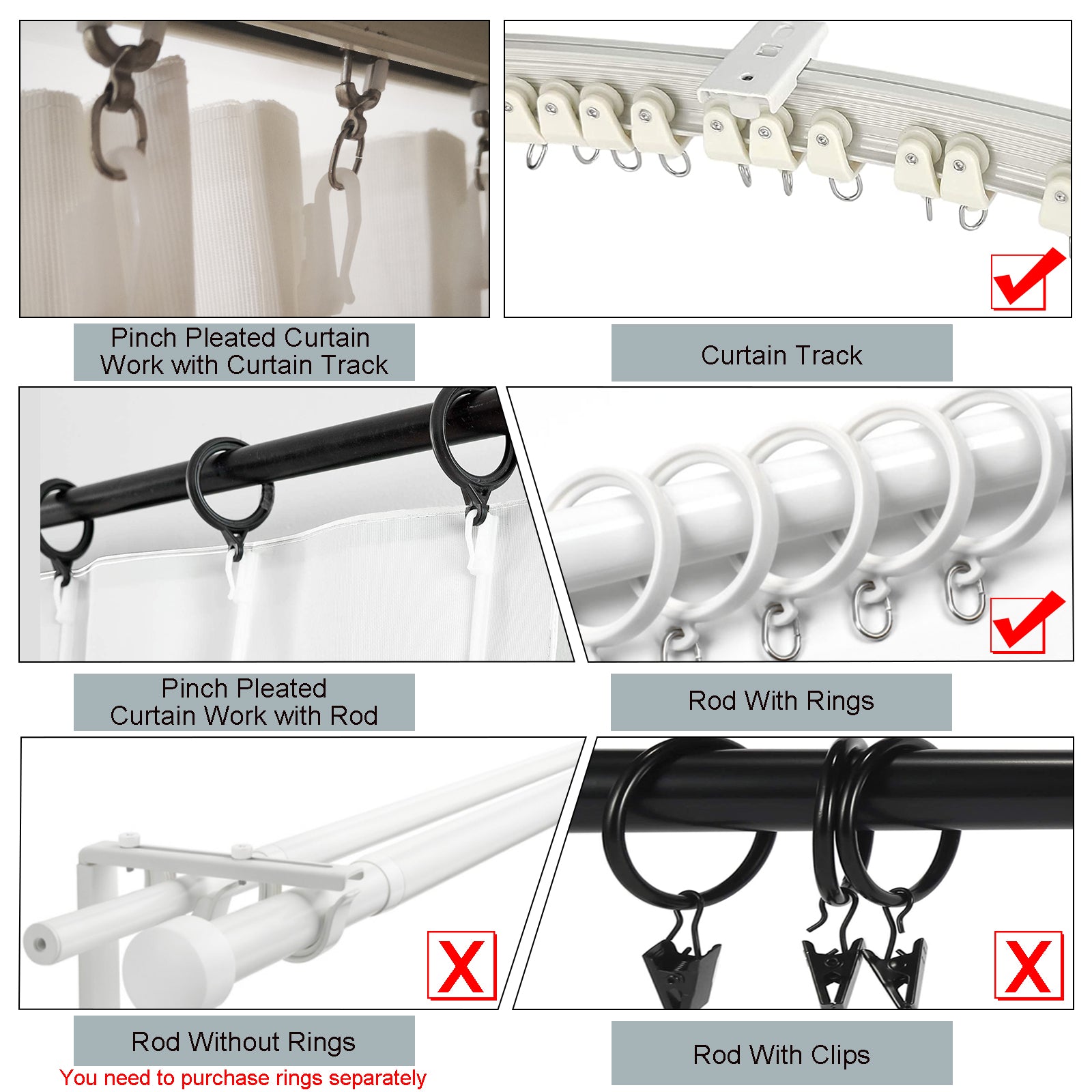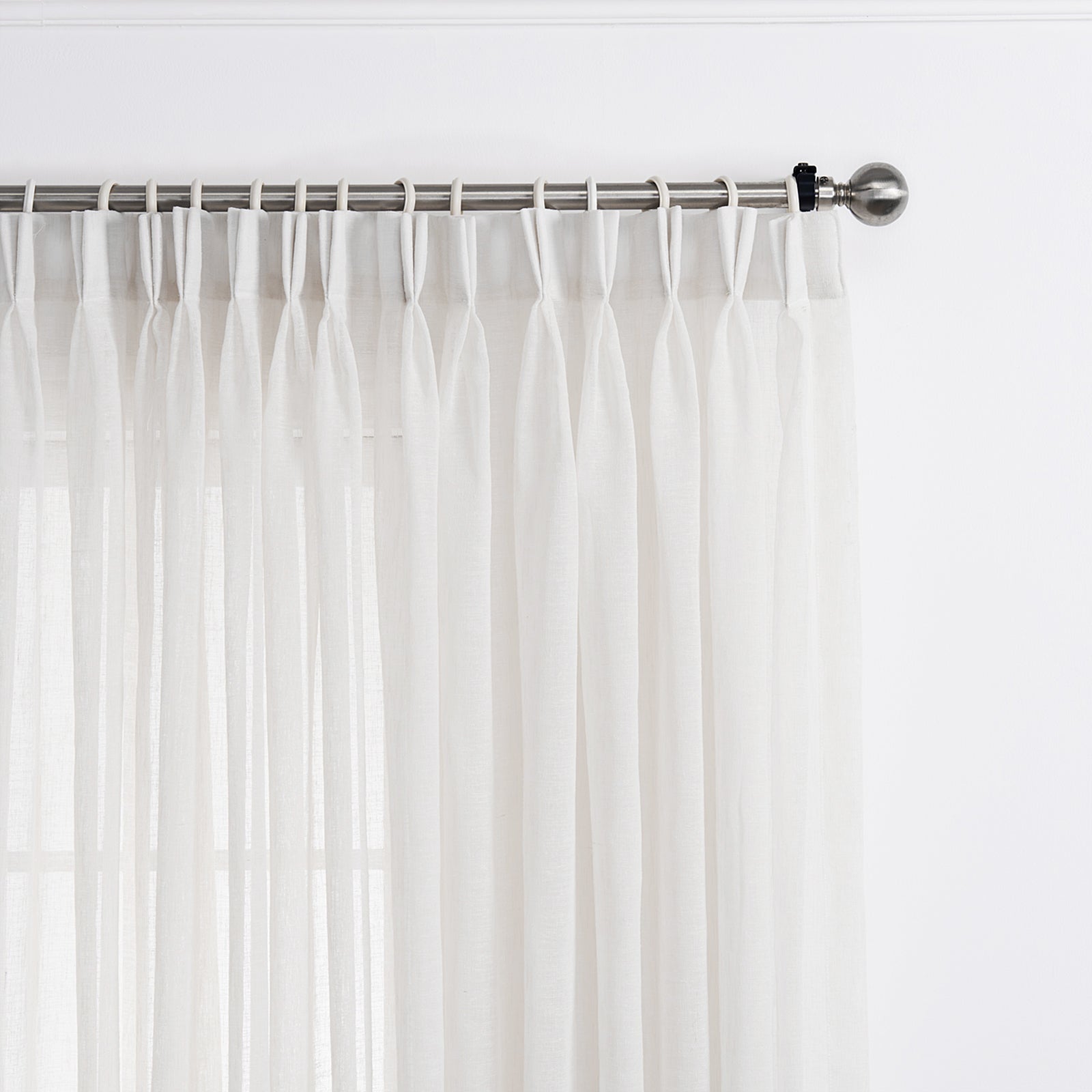 Pinch pleated sheer panel, hooks including in the package, good for track and pole which has eyelet rings.