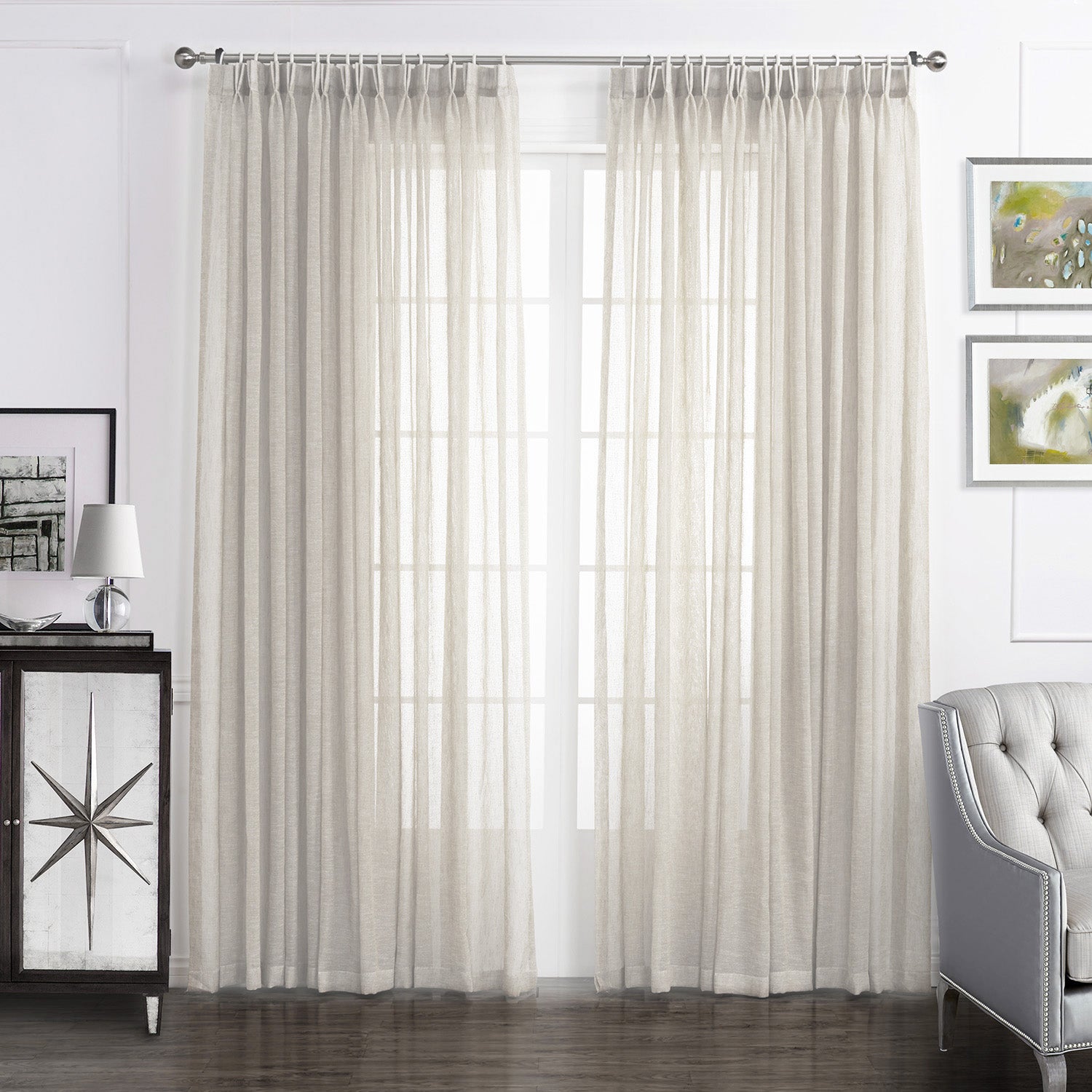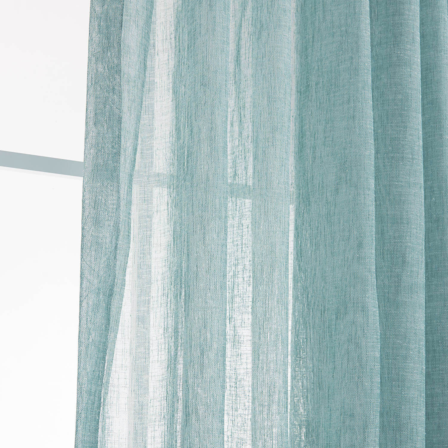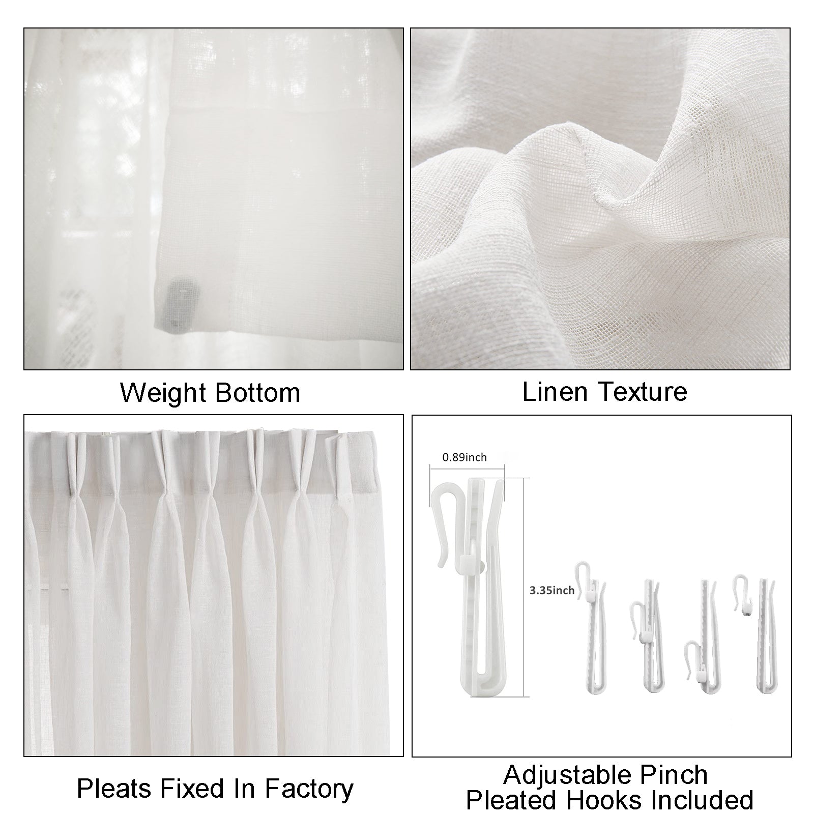 LANTIME Sheer Curtains , Faux Linen Double Pleats Window Sheer Curtains Panels Drapery for Home, Hotel, Office, Set of 2