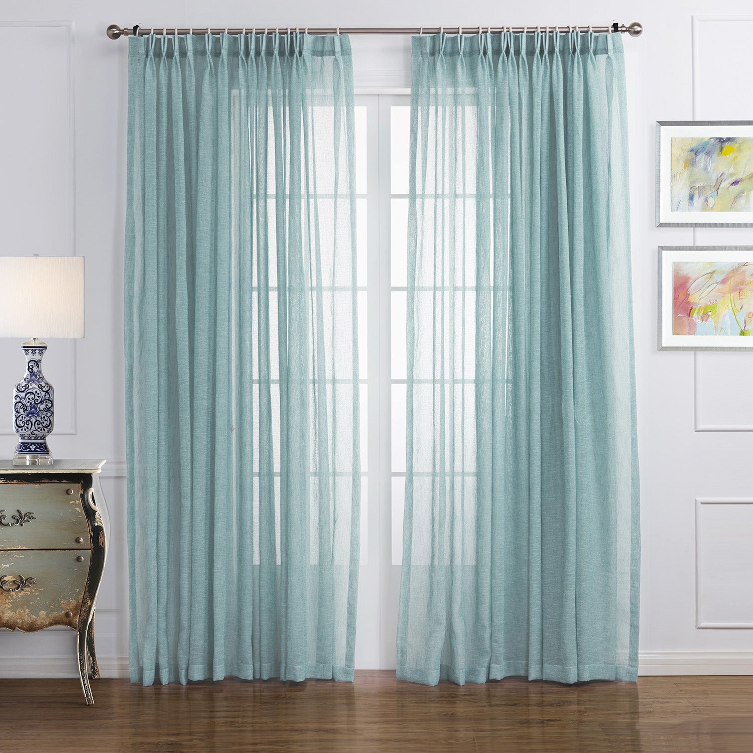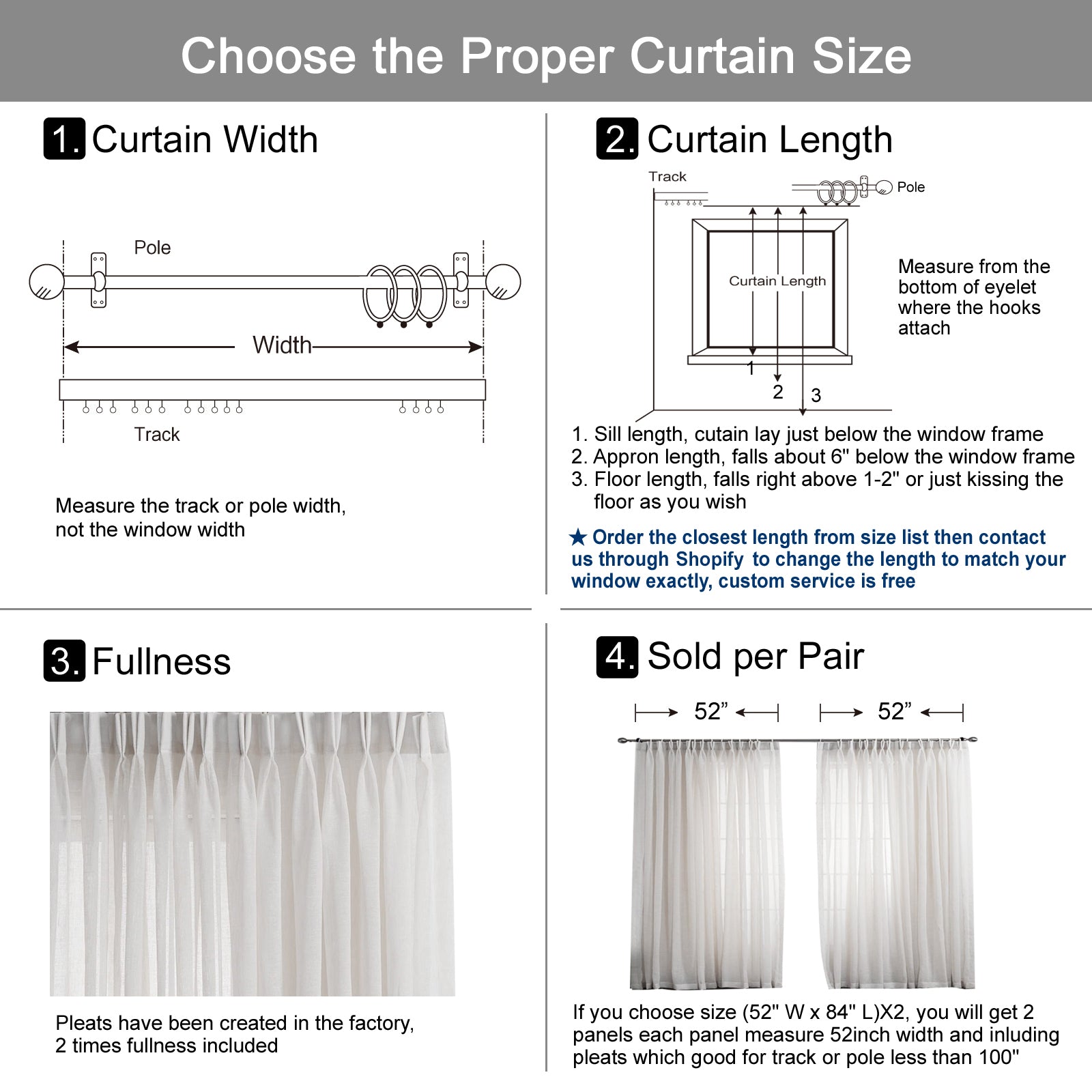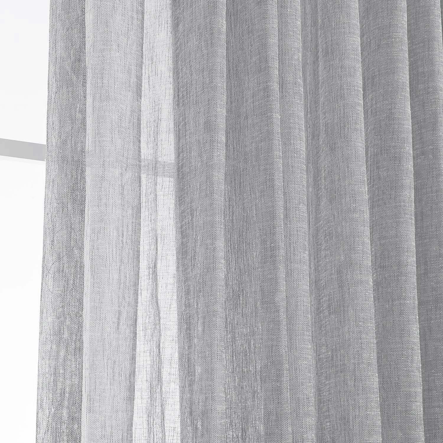 LANTIME Sheer Curtains , Faux Linen Double Pleats Window Sheer Curtains Panels Drapery for Home, Hotel, Office, Set of 2